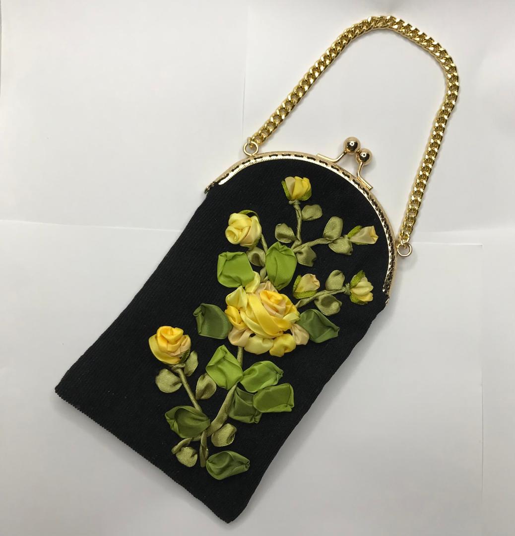 کیف موبایل پارچه مخمل کبریتی با روبانهای مجستیک