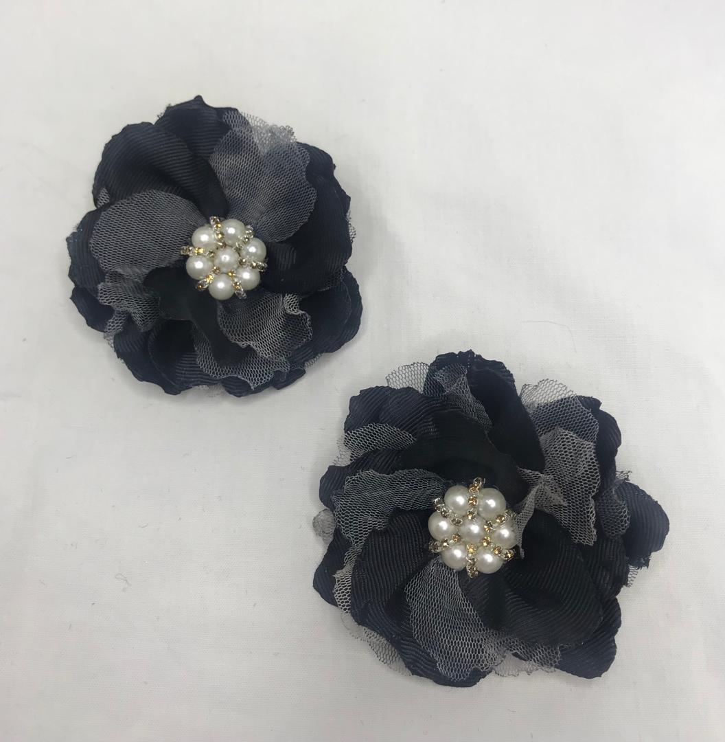 گل سر با روبان مشکی گروگن پشت انبری، با گلبرگهای مشکی و طوسی و مرکز مرواریدی طلایی، جلوهای خاص و کلاسیک دارد. این اکسسوری دستدوز با کیفیت بالا ساخته شده و برای استایلهای رسمی و روزمره مناسب است. طراحی لایهدار آن زیبایی مو را دوچندان میکند.